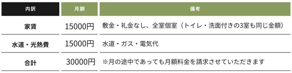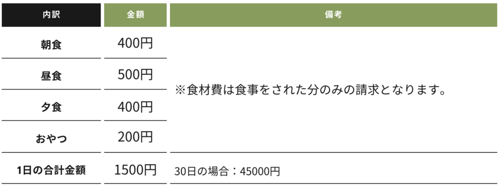 - 初期加算:入居された日より日額30円を30日分頂きます。